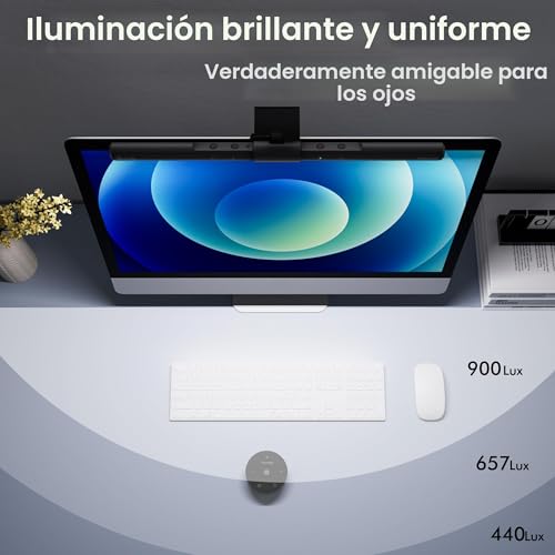 Cerca de Los angeles luz herbal y el índice de reproducción cromática Ra98 extremely alto: nuestra barra de luz para computadora cuenta con 78 cuentas LED de alta calidad, ofreciendo una iluminación uniforme y adecuada mientras minimiza las sombras y el deslumbramiento, creando un ambiente de iluminación cómodo para leer, trabajar y jugar. El alto CRI mejora los colores vibrantes y realistas, haciendo que los objetos en tu pantalla parezcan vívidos y realistas. Perfecto para profesionales dedicados al trabajo de colour, asegurando Los angeles precisión del colour y minimizando Los angeles fatiga ocular.