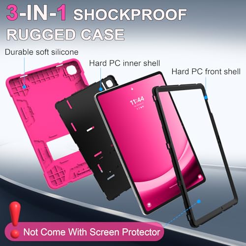 Funda de protección 3 en 1 para tableta Samsung Galaxy Tab A9+ de 11 pulgadas, 64 GB, Android Tablet SM-X210/X216/X218 ASIN: B0CLF3VPMV. Estuche de absorción de impactos Rantice: Defensa de grado militar cumple con el diseño inteligente ¿Por qué elegir Rantice? Protección de 3 capas de grado militar Armadura exterior de silicona: capa flexible que absorbe los golpes con textura antideslizante para un agarre seguro. Marco de parachoques de policarbonato reforzado: policarbonato de alta resistencia absorbe impactos en esquinas y bordes. Carcasa interior de policarbonato duro: el chasis ajustado evita que se doble y se raye. (Sin protector de pantalla integrado, combina con tu cristal templado favorito). Ingeniería de precisión para un uso sin costuras. Protector de cámara antiarañazos: el bisel elevado protege las lentes de arañazos y suciedad. Puertos de acceso completo: recortes perfectamente alineados para altavoces, puerto de carga, teclas de volumen y micrófonos. Botones táctiles: controles receptivos con comentarios nítidos de «clic». Modo de escritura ajustable 2 en 1 (ángulo inclinado): ideal para videollamadas, correos electrónicos y productividad. Modo de visualización (ángulo relajado): perfecto para películas, juegos o navegación manos libres. Construido para una vida real a prueba de caídas. Probado para soportar caídas diarias, desde escritorios hasta mochilas. Listo para el entretenimiento: apóyalo, relájate y mira tus programas favoritos sin tensión en el cuello. Silicona ecológica y agarre a prueba de niños = tranquilidad para los padres. Travel Smart La armadura ligera se desliza en bolsas sin esfuerzo, perfecta para viajes de trabajo o sesiones de cafetería. ¡Mejora la defensa de tu pestaña hoy! No dejes que las gotas arruinen tu productividad o entretenimiento. La funda Rantice combina dureza militar con funcionalidad elegante, porque tu Galaxy Tab merece una armadura tan inteligente como tú.