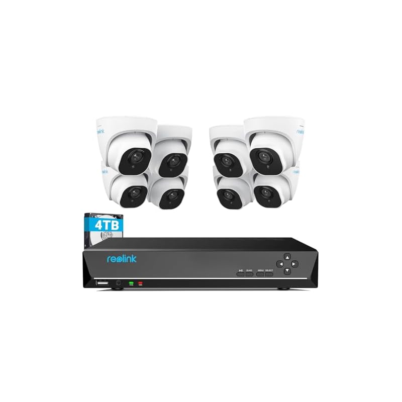 Especificaciones: Reolink 16CH 4K PoE Kit Camaras de Vigilancia, 8X 8MP Detección de Personas/Vehículos Cámaras IP de Seguridad Exterior, H.265 4K NVR con 4TB HDD, Visión Nocturna, Grabación 24/7, RLK16-800D8