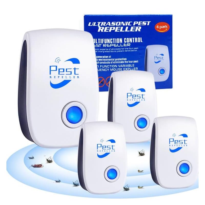 Especificaciones: Repelente Ultrasónico de Plagas, 4 Pack Electrónico Repelente Mosquitos Control de Plagas, Repelente Ultrasónico Ratas para Anti Mosquitos, Moscas, Ratones, Cucarachas, Arañas, Roedores