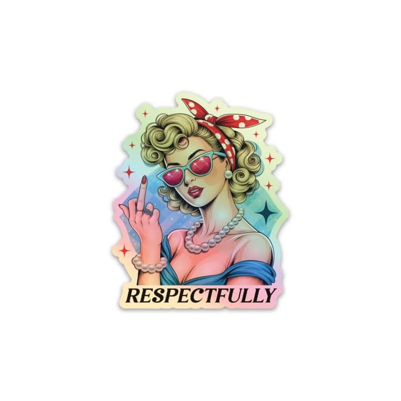 Respectfully – Calcomanía holográfica de dedo medio para niñas, divertido meme de humor para adultos para botellas de agua, calcomanías impermeables para laptop, sombreros duros, teléfono, calcomanías