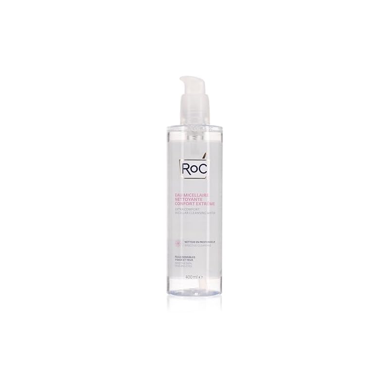 RoC – Agua Limpiadora Micelar Extraconfort – Piel, Rostro y Ojos Sensibles – Limpieza Eficaz – Minimiza los Riesgos de Alergia – 400 ml