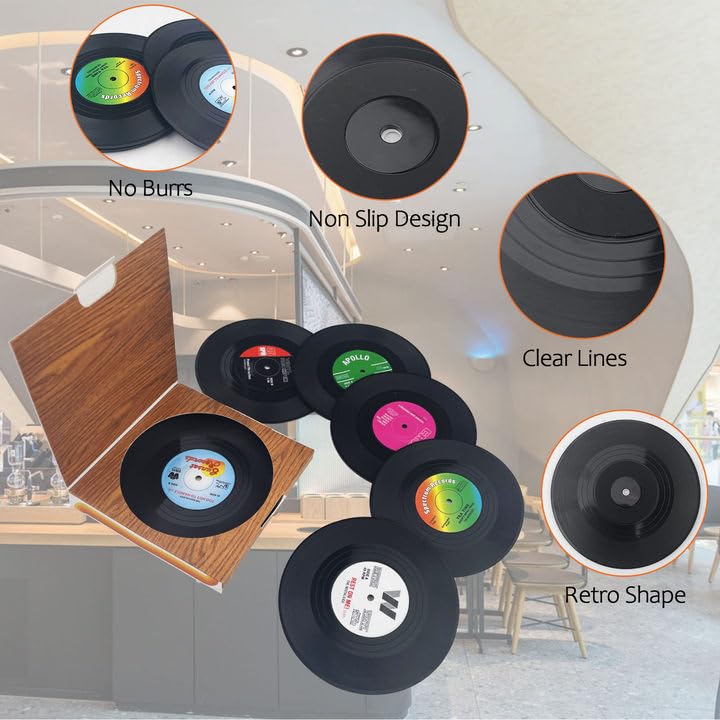 Posavasos de vinilo vintage Material: ABS de calidad alimentaria Tamaño: 10,5 cm de diámetro