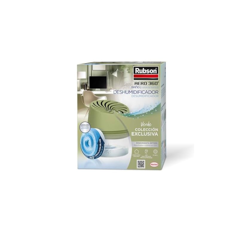 Especificaciones: Rubson AERO 360º Deshumidificador portátil antihumedad Edición Limitada Color Verde Oliva (1 aparato y 1 tableta 450 g), absorbe humedad que previene la condensación