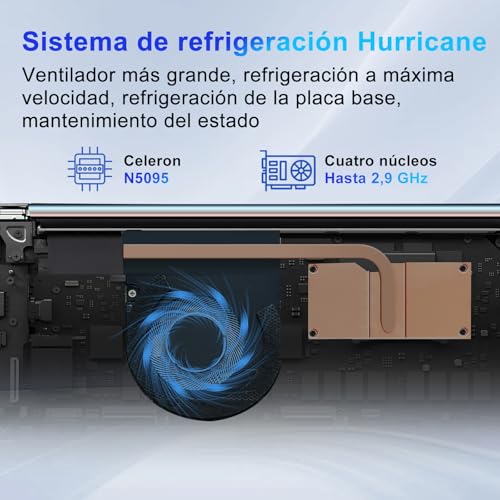 Potente productividad de 4 núcleos N5095: Ordenador portátil Usando el Celeron N5095 de 4 núcleos (hasta 2,9 Ghz), equipado con un ventilador de refrigeración, la refrigeración por aire concentrada mantiene el procesador en buenas condiciones, lo que permite que su computadora portátil ejecute sin problemas múltiples aplicaciones, pestañas del navegador y videos, realice rápidamente múltiples tareas y disfrute de entretenimiento, trabajo y estudio inmersivos.