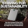 Impulsado de forma sostenible. Compatibilidad universal. Almacenamiento portátil Seagate — Ultra Touch HDD. Esforzándose por la sostenibilidad, este impulso contiene al menos un 30% de materiales reciclados posconsumo en peso y tiene envases 100% reciclables. Con un diseño suave y natural: esta unidad ligera y portátil aporta una elegancia suave a tu espacio de trabajo. Esta unidad contiene al menos un 30% de materiales reciclados posconsumo en peso para respaldos ecológicos. Diseño natural inspirado en el mundo natural, estas unidades cuentan con tonos suaves y un diseño suave. Compatibilidad universal: funciona con PC, Mac y Chromebook, gracias a la compatibilidad universal USB-C. El diseño ligero permite una fácil portabilidad al trabajo, la escuela o donde necesites tus archivos.