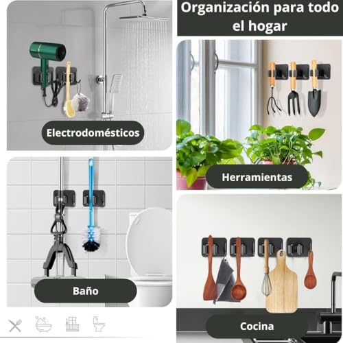 Ya sea que necesites un cuelga escobas para pared adhesivo para la cocina, un organizador de herramientas para el jardín, el baño, un porta herramientas y organizador de herramientas de pared para el garaje o el lavadero, este set es la opción perfecta. Además, el gancho adicional incluido en cada soporte te permite colgar otros accesorios como recogedores, toallas o incluso pequeñas herramientas, convirtiéndolo en un escobero adhesivo multifuncional.