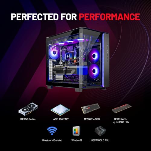 Skytech King 95 Gaming PC de escritorio, Ryzen 7 9700X 3.8 GHz (5.5GHz Turbo Boost), NVIDIA RTX 5070 12GB GDDR7, 1TB Gen4 SSD, 32GB DDR5 RAM 6000 RGB, 850W Gold PSU, 14.173 in ARGB AIO, Wi-Fi, Win 11