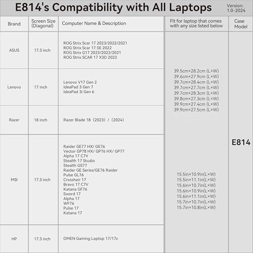 Modelo No. : E814; dimensiones internas de la caja: 16.7×11.5×1.0 in (16.73×11.5×0.98 pulgadas)