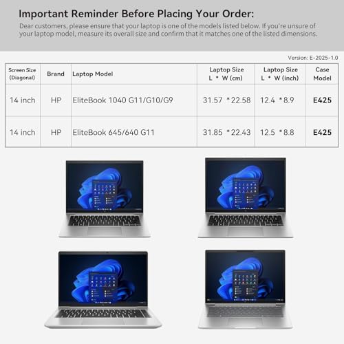 Diseñado específicamente para HP EliteBook 645/640 G11 de 14 pulgadas; para HP EliteBook 1040 G11/G10/G9 de 14 pulgadas; para HP EliteBook 845 G11/G10/G9 de 14 pulgadas; para HP EliteBook 840 G11/G9 de 14 pulgadas. 38/G9 . Nuestra funda proporciona un unión preciso y seguro que minimiza el acto y maximiza la protección. Disfruta de una experiencia de manga ajustada y a medida que las fundas estándar no pueden ofrecer