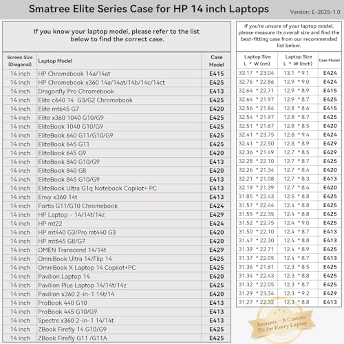 Especificaciones: Smatree Funda para portátil HP EliteBook 840/845/1040 G11/G9/G10 de 14 pulgadas, para computadora portátil de juegos EliteBook 640/645 G11, funda protectora delgada HP EliteBook con bolsillo para