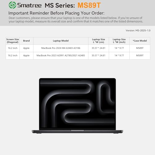 Especificaciones: Smatree MS89T – Funda protectora rígida de EVA con soporte compatible con MacBook Pro M4 de 16.2 pulgadas 2024/2023/2022/2021, para MacBook Pro A3403/A3186/A2485/A2991/A2780 de 16.2 pulgadas, funda