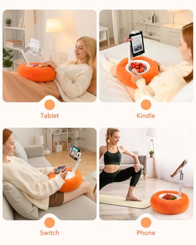 Soporte de almohada desmontable con cuenco de aperitivo: el soporte de almohada naranja con cuenco de aperitivos cuenta con un diseño de liberación rápida para una fácil instalación. Con un diámetro de 13 pulgadas, el soporte de almohada para iPad ofrece estabilidad y portabilidad. L. a. funda de tela de felpa de doble capa es artful, sin pelusa y lavable a máquina. El cuenco de aperitivos incluido de 5.9 pulgadas está hecho de subject matter inastillable, perfect para almacenar aperitivos, volteador de páginas remoto y objetos pequeños, lo que hace que leer, ver películas o tableta sea más cómodo y agradable.