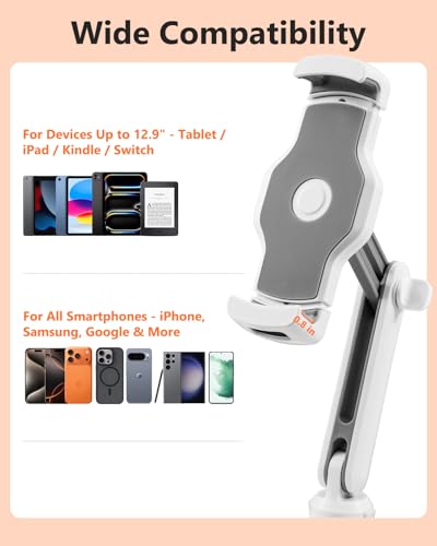 Compatibilidad universal: soporte ergonómico y ajustable de almohada de lectura para tablet XAOVUIR con un rango de abrazadera de 5.1 a 9.1 pulgadas, compatible con todas las tabletas de 4.7 a 13 pulgadas, Kindle, iPad, teléfonos, dispositivos Steam Deck, como iPad Pro de 13 pulgadas (M5 / M4), iPad Pro de 11 pulgadas (M5 / M4), iPad Air (5ª generación, 4ª generación, 3ª generación). Gen), iPad (1) 0ª generación / 9ª generación / 8ª generación), iPad mini (8.3 pulgadas 6ª generación / 7.9 pulgadas 5ª generación), Samsung Galaxy Tab S10 Lite (10.9 pulgadas), Samsung Galaxy Tab S10 FE (10.9 pulgadas), Samsung Galaxy Tab A9+ (11 pulgadas), Galaxy Tab S11 (11 pulgadas), Galaxy Tab S10+ (12) .4 ″), Galaxy Tab A9 y otras pestañas Galaxy de 8 a 11 ″, tableta Google Pixel, iPhone 17/16/15 Pro/Pro Max/Mini, Blackberry, Google Pixel, Kindle, Steam Deck, Switchetc.