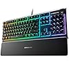 SteelSeries Teclado para juegos Apex 3 RGB – Iluminación RGB de 10 zonas – Resistente al agua IP32 – Reposamuñecas magnético de alta calidad (interruptor silencioso para juegos) (renovado)