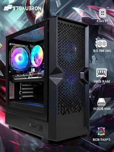 STGAubron Computadora de escritorio para juegos, Radeon RX 580 16G, Intel Core i7 hasta 3.9G, 16G RAM, SSD 512G, WiFi 600M, BT 5.0, ventilador RGB x3, Windows 11 Home