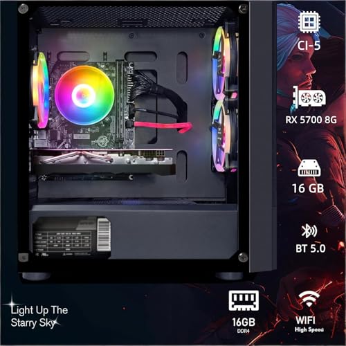 Especificaciones: STGAubron Computadora de escritorio para videojuegos, Intel Core i5 hasta 3.6G, Radeon RX 5700 8G, 16 GB de RAM, 512 GB SSD, WiFi, BT 5.0, ventilador RGB x3, Windows 11 Home