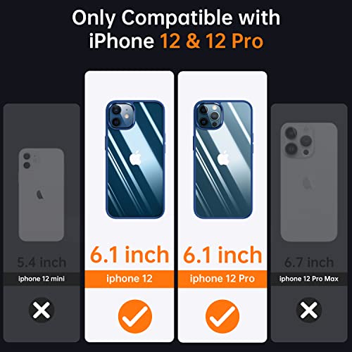 Protección militar contra caídas de 10 pies: las cuatro esquinas de la funda para iPhone 12 y iPhone 12 Pro tienen bolsas de aire integradas que dispersan impactos, equipadas con la última tecnología de ángulo anticolisión, el panel trasero está hecho de policarbonato rígido y los bordes están hechos de parachoques de silicona flexible, que protegen fuertemente el teléfono móvil sobresaliente de caídas, golpes y daños frontales o boca abajo.