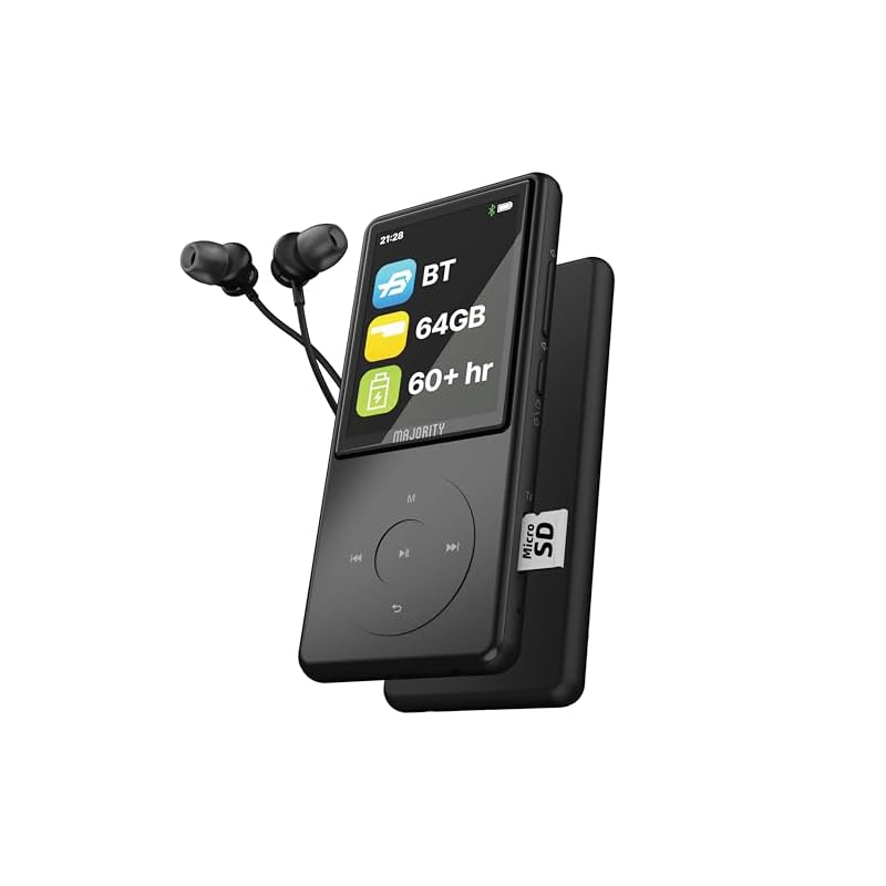 Presentamos el Majority MP3 Pro, el compañero musical portátil definitivo. Con su diseño extraplano y conectividad Bluetooth, disfrute de la música sin cables dondequiera que vaya, ya sea durante los entrenamientos, los desplazamientos o los viajes. Almacene hasta 12.000 canciones con su impresionante memoria integrada de 64 GB, ampliable a 128 GB para disfrutar de aún más opciones musicales. Disfrute de la música sobre la marcha con el altavoz incorporado, o utilice los auriculares de alta calidad incluidos para disfrutar en privado. Su carcasa de aleación de zinc le confiere un tacto de primera calidad y un diseño elegante, y su gran pantalla a todo color de 2,4» facilita la navegación por la música con imágenes vibrantes. Además, disfrute de la tranquilidad de nuestra garantía ampliada de 3 años. El paquete incluye reproductor MP3 Pro, auriculares y cable USB C.reproductor mp3 mp3 bluetooth ipod mp3 reproductor reproductor mp3 bluetooth mp3 player reproductor musica leitor mp3
