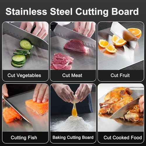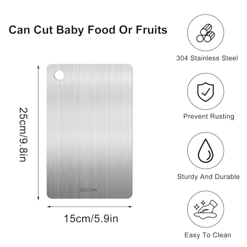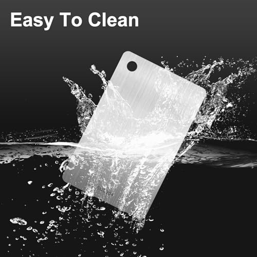 Más Portátil: Nuestras tablas de cortar de titanio tienen un diseño liviano y son fáciles de transportar. Se puede limpiar simplemente frotándolo con agua, lo que facilita mucho la cocción