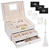 TAVADA Caja Joyero de 3 Niveles,Joyeros Mujer Organizador,Estche de Joyería,Organizador Joyas Cuero PU con 2 Cajones,Incluye 1borla y 3 paño para pulir plata para Pendientes,Anillos,Collares