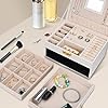 Especificaciones: TAVADA Caja Joyero de 3 Niveles,Joyeros Mujer Organizador,Estche de Joyería,Organizador Joyas Cuero PU con 2 Cajones,Incluye 1borla y 3 paño para pulir plata para Pendientes,Anillos,Collares