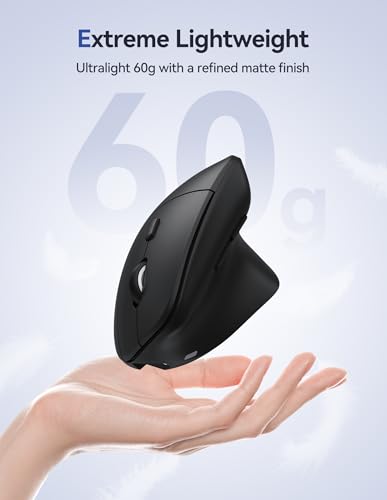 Diseño vertical ergonómico: experimenta un agarre natural de «apretón de manos». Este mouse ergonómico inalámbrico permite que tu muñeca y palma mantengan una postura saludable y natural, ayudando a prevenir la fatiga y las molestias por el uso prolongado. Ideal para usuarios con manos pequeñas a medianas