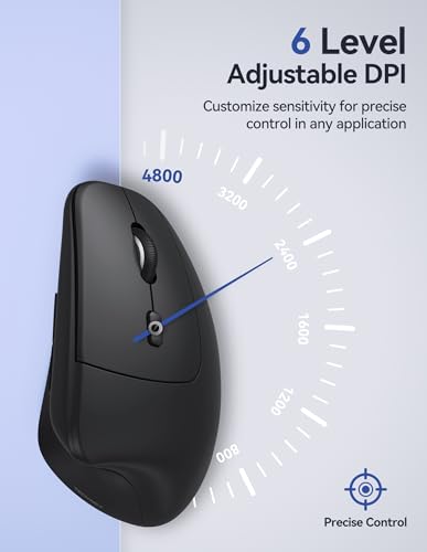 Especificaciones: TECKNET Ratón ergonómico, mouse vertical inalámbrico, 4800 DPI, mouse Bluetooth recargable para túnel carpiano mano derecha, conectividad de 3 dispositivos para laptop, PC, MacBook, negro