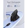 Ratón ergonómico recargable: el mouse inalámbrico vertical puede proporcionar 1-2 meses de uso intensivo cuando está completamente cargado con el cable tipo C incluido y admite la carga mientras está en uso. Los botones izquierdo y derecho están diseñados para un funcionamiento silencioso, lo que te permite centrarte en el trabajo sin molestar a otros en entornos silenciosos como oficinas y bibliotecas