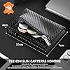 Diseño delgado y multifuncional: la billetera TEEHON está hecha de cuero de fibra de carbono de alta calidad y un marco de aluminio cuidadosamente diseñado. El tarjetero de aluminio puede contener hasta 5 tarjetas, con ranuras adicionales para 3 tarjetas más, 1 ventana de identificación, 1 compartimento para billetes y 1 bolsillo para monedas. Esto significa que solo necesita una billetera para administrar fácilmente todas sus necesidades, sin necesidad de un bolsillo para monedas adicional