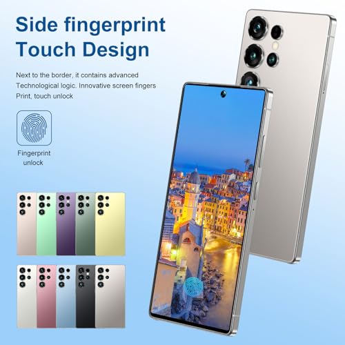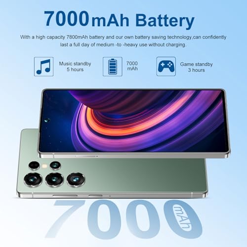 Especificaciones: Teléfono celular I25 Ultra desbloqueado, pantalla HD+ de 6.99 pulgadas, 16 GB de RAM + 512 GB de ROM, Android 14, batería de 7000 mAh, 5G, doble SIM, desbloqueo de huellas dactilares e