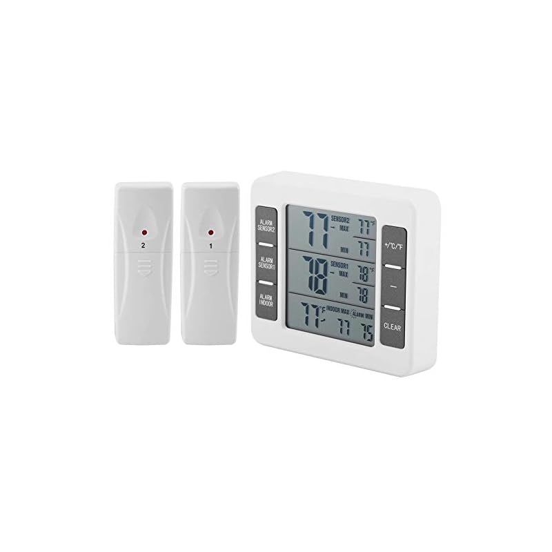 Especificaciones: Termómetro audible Termómetro de refrigerador Refrigerador digital Therometer Alarma audible digital inalámbrica Refrigerador Termómetro de congelador con sensor 2PCS Sensor de temperatura digital int