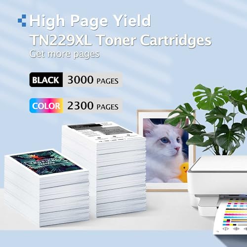 Alto rendimiento de páginas: hasta 3000 páginas para el cartucho de tóner negro TN229XL y el rendimiento de páginas del cartucho de tóner de color TN229XL hasta 2.300 páginas (Carta/A4, con una cobertura del 5%)