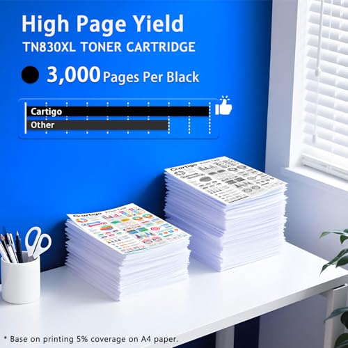 Alta calidad: nuestro cartucho de tóner TN830XL ofrece impresiones vibrantes y sin manchas con texto nítido y colores intensos, perfecto para empresas, escuelas, hospitales o usuarios domésticos frecuentes que exigen resultados profesionales