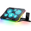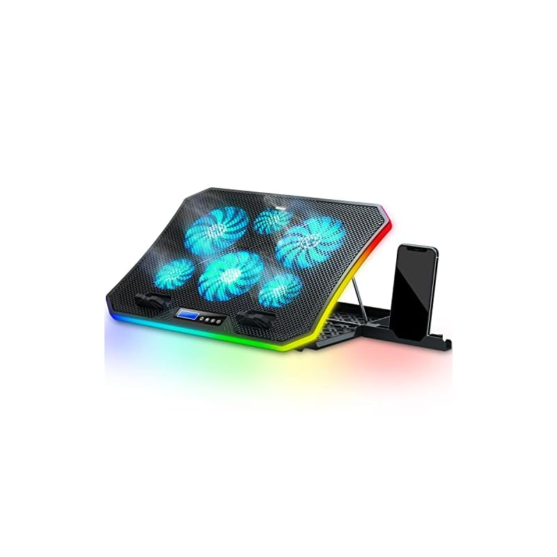 TopMate C12 Base Refrigeradora Portatil Gaming RGB para Escritorio y Regazo, Refrigeración para Portátiles de 15,6-17,3″, 8 Alturas Ajustables con 6 Ventiladores y Soporte Teléfono-Luz LED Azul Hielo