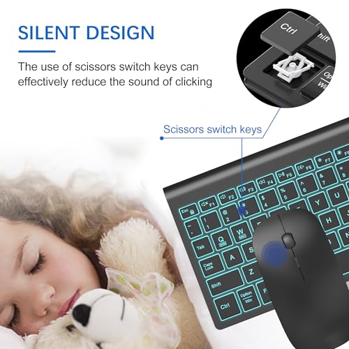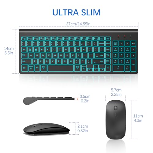 Batería de larga duración: el teclado inalámbrico iluminado viene con una batería recargable integrada de 1600 mAh y un cable de carga, que ofrece hasta 350 horas de uso con la luz de fondo apagada. El mouse incluye una batería AAA con una vida útil de 3 a 5 meses (dependiendo del uso). Garantía de 2 años: si surgen problemas de calidad con el teclado y el mouse dentro de 2 años, proporcionaremos un reemplazo gratuito.