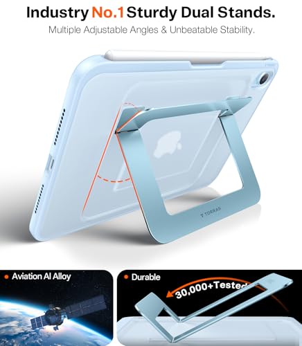 TORRAS Funda para iPad mini 7 A17 Pro, iPad mini 6 con soporte para lápices, soporte ultra estable, múltiples ángulos de visión ajustables, cubierta protectora delgada, funda translúcida para iPad