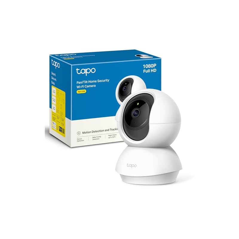 TP-Link TAPO C200 – Cámara IP WiFi 360° Cámara de Vigilancia FHD 1080p,Visión nocturna, Notificaciones en tiempo real, Admite tarjeta SD,Detección de movimiento,Control Remoto,Compatible con Alexa
