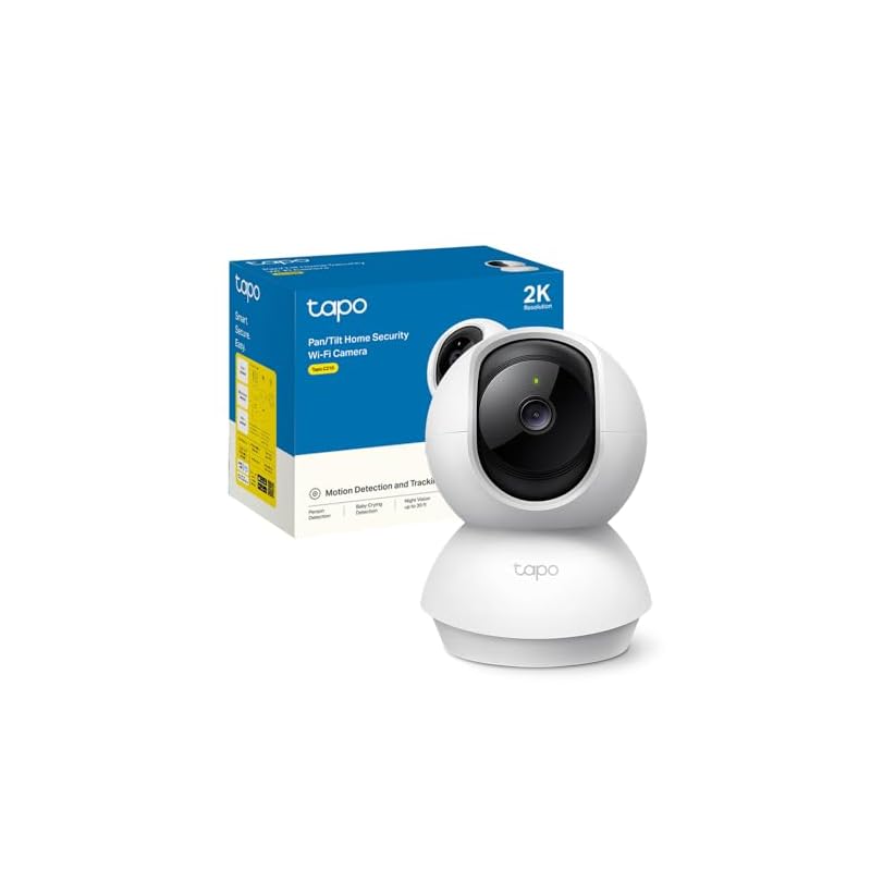 TP-Link Tapo C210 – Cámara IP WiFi 360° Cámara de Vigilancia 2K (3MP),Visión nocturna Admite tarjeta SD hasta 512 GB, Detección y seguimiento de movimiento, Control Remoto, Compatible con Alexa