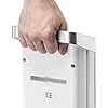 Práctico y manejable: el asa de transporte integrada facilita el desplazamiento del aerotermo. Todos los ajustes del dispositivo pueden realizarse cómodamente a través del mando a distancia de largo alcance. Cuando se necesita, desaparece de forma invisible en el soporte integrado.