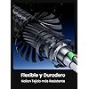 [Duradero y Flexible] Con el blindaje de múltiples capas en el interior, el cable USB C evita efectivamente la interferencia de la señal externa, la transmisión de la señal es más estable y más rápida. Adopte el revestimiento de nailon, es más duradero.