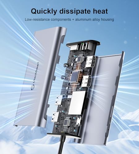 UtechSmart Estación de acoplamiento USB, 11 en 1 USB C Dock triple pantalla, estación de acoplamiento USB 3.0 para laptop con doble HDMI, VGA, PD, Ethernet, SD/TF, USB 3.0, micrófono/audio, compatible con MacBook M1, Dell, HP Lenovo