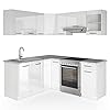 Vicco Cocina esquinera Rick, Blanco Alto Brillo, 167 x 187 cm, ET Mármol