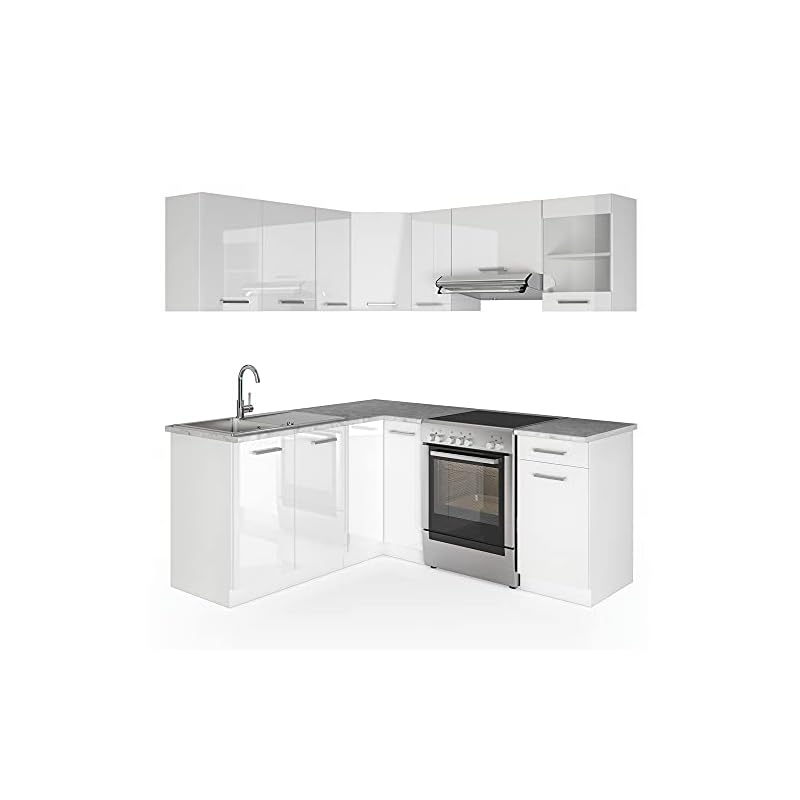 Especificaciones: Vicco Cocina esquinera Rick, Blanco Alto Brillo, 167 x 187 cm, ET Mármol