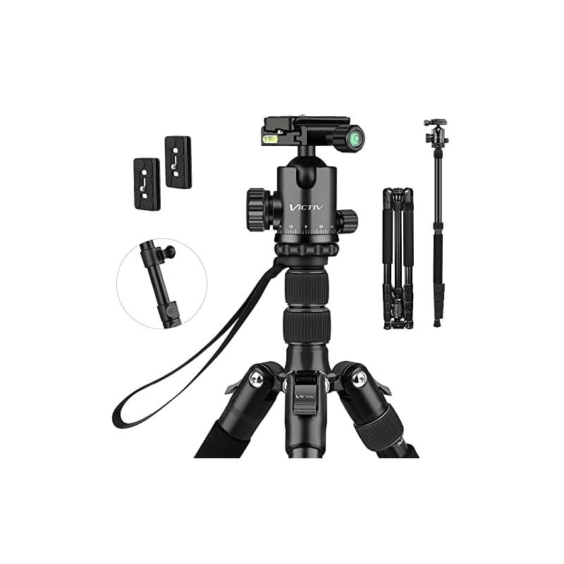 Especificaciones: Victiv Trípode Cámara 206cm, Trípode de Viaje Portátil de Aluminio para DSLR, 360° Rótula de Bola Panorámica una Capacidad de Carga de 15 kg, Monopié Desmontable con Bolsa de Transporte – Negro