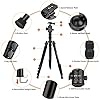 【Súper estable y portátil】 La cabeza esférica de gran tamaño de 36 mm de diámetro se puede fijar de forma estable en el ángulo que desee; El tubo de pierna de 26 mm más grueso proporciona una mejor estabilidad para su cámara, el trípode con un peso de 1,78 kg proporciona una carga máxima de 15 kg