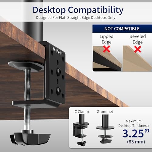 Abrazadera en C resistente: se monta en l. a. parte posterior de tu escritorio (hasta 3.25 pulgadas de grosor) a través de una abrazadera en C de alta resistencia o un soporte de ojal opcional.