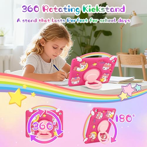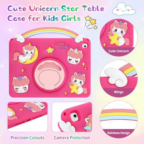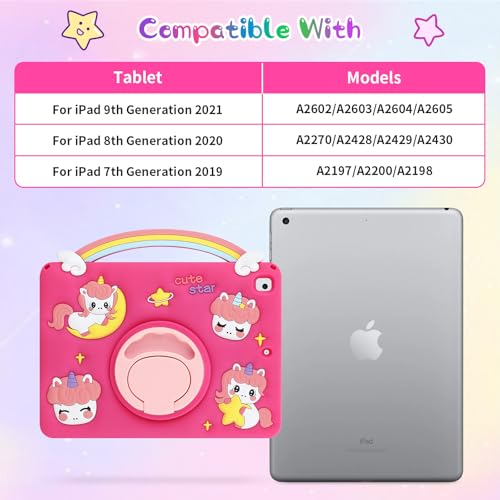 Bonito diseño de unicornio arcoíris: esta funda para iPad 9.7 cuenta con detalles 3D de unicornio, arcoíris y estrellas en rosa intenso vibrante, lo que hace que esta funda para iPad para niños sea irresistiblemente encantadora para niñas y niños que adoran los accesorios inspirados en la fantasía. Ligero, flexible y fácil de instalar y quitar. La superficie de silicona lisa de la funda para iPad de 6ª generación es cómoda de sostener y fácil de limpiar, ideal para el uso diario de los niños
