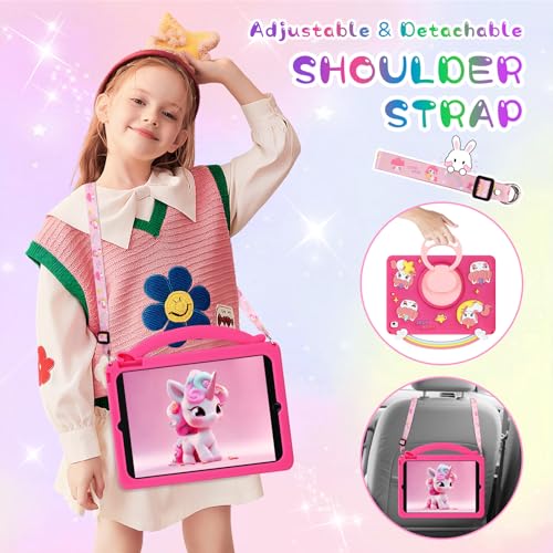 Especificaciones: VOFUOE Funda para iPad de 6ª/5ª generación para niños y niñas para iPad 9.7 2018 2017 con correas para el hombro Soporte de 360 ° Rainbow Unicorn Funda protectora de silicona suave para iPad Pro para