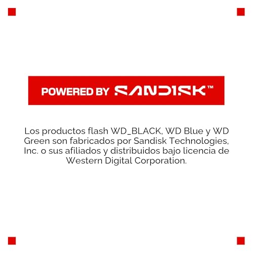 DESARROLLADO POR SANDISK: Los productos de flash WD_BLACK, WD Blue y WD Green son fabricados por Sandisk Technologies, Inc. o sus afiliados y distribuidos bajo licencia de Western Digital Corporation.